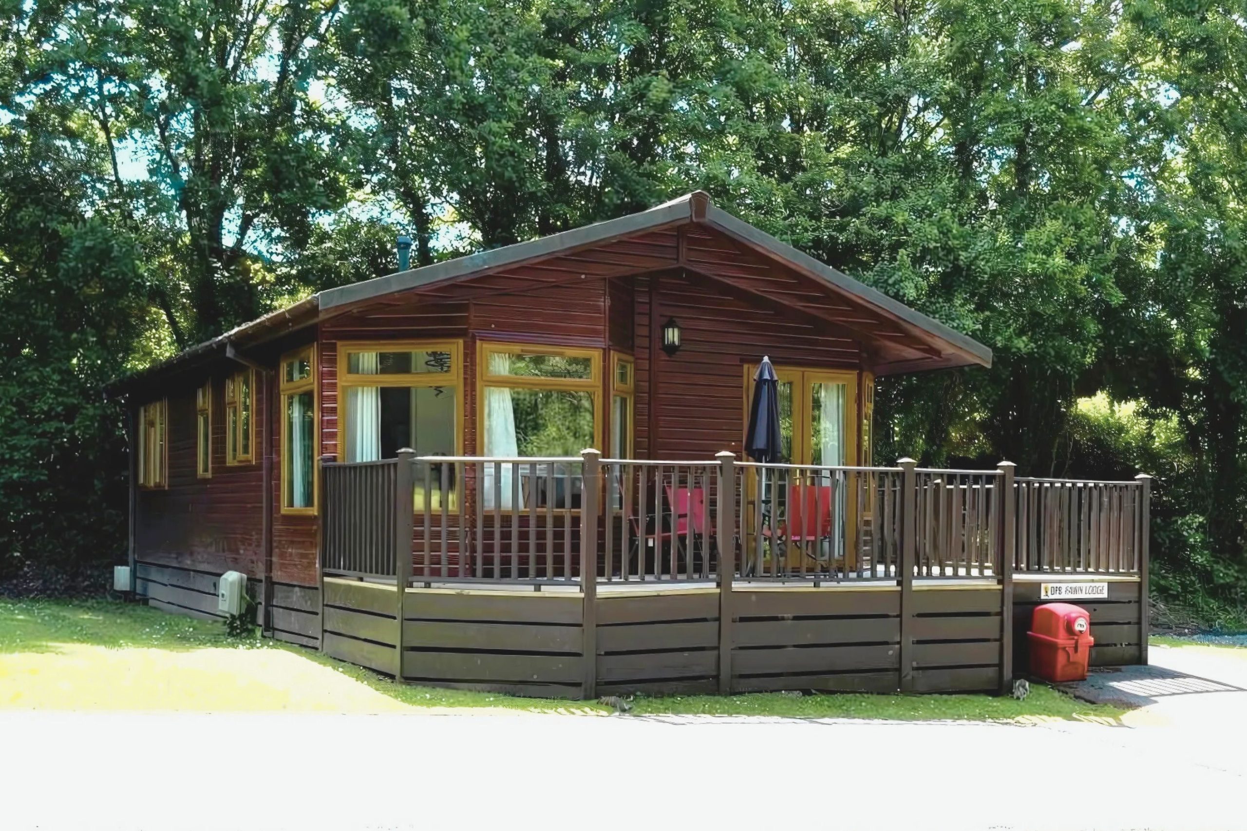 A two-bedroom holiday lodge with an enclosed decking and a private hot-tub. Cul-de-sac location. Only a 5-minute walk from Holiday Resort & Spa facilities (Chudleigh, South Devon).
